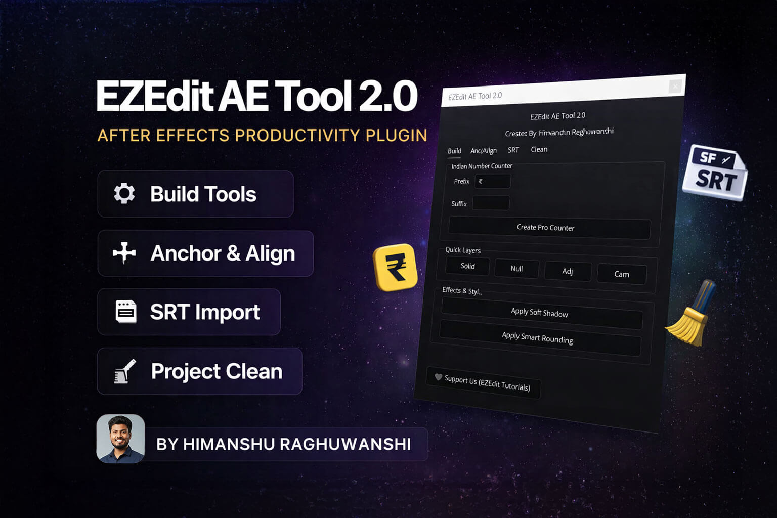 Created by Himanshu Raghuwanshi (EZEdit Tutorials), this tool helps editors, motion designers, and content creators work smarter with smart automation features.